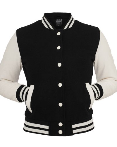Oldschool College Jacket from Urban Classics with feminine cut, two side pockets, in black/white color mix Urban Classics Urban Classics is a specialist in contemporary Urban and Streetwear at unbeatable prices. The basic range of the collection comes from T-shirts and longsleeves, sweatshirts to cool accessories. The good workmanship of the product provides a fully satisfactory fit. Urban Classics - your brand to look good every day.